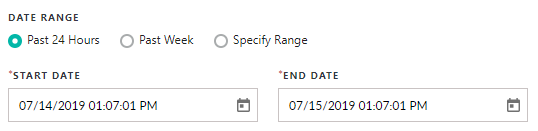 In the Date Range, you can search within various time frames. Past 24 Hours and Past Week will auto-populate the start and end dates.