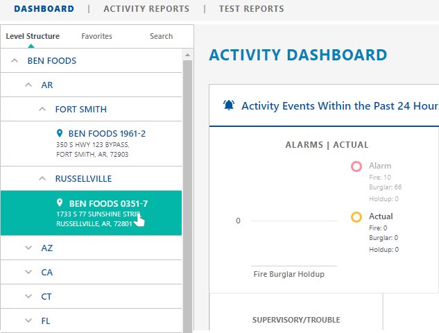 1. From the Level Structure panel, select the desired levels to include in the graph. You can search levels using the Level Structure, Favorites, or Search tab. The level selected will populate data in the Activity Dashboard chart/////.