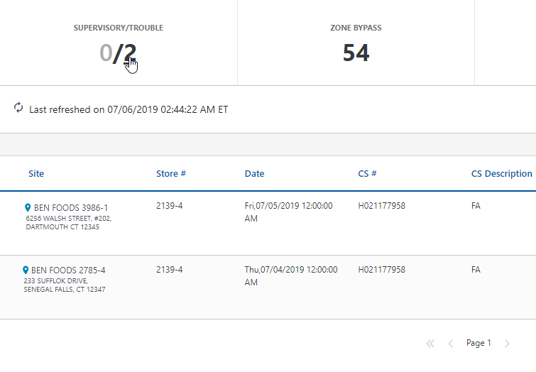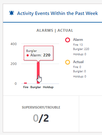 2. To view more extensive data (Site, Store, CS#, Date/Time, Zone ID, etc), click the individual bars in the chart or desired category numbers . The event details are shown in the Dashboard Grid panel that populates below the charts.