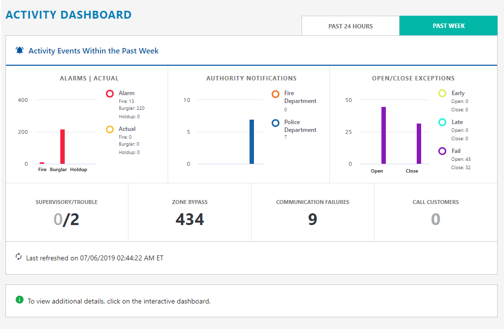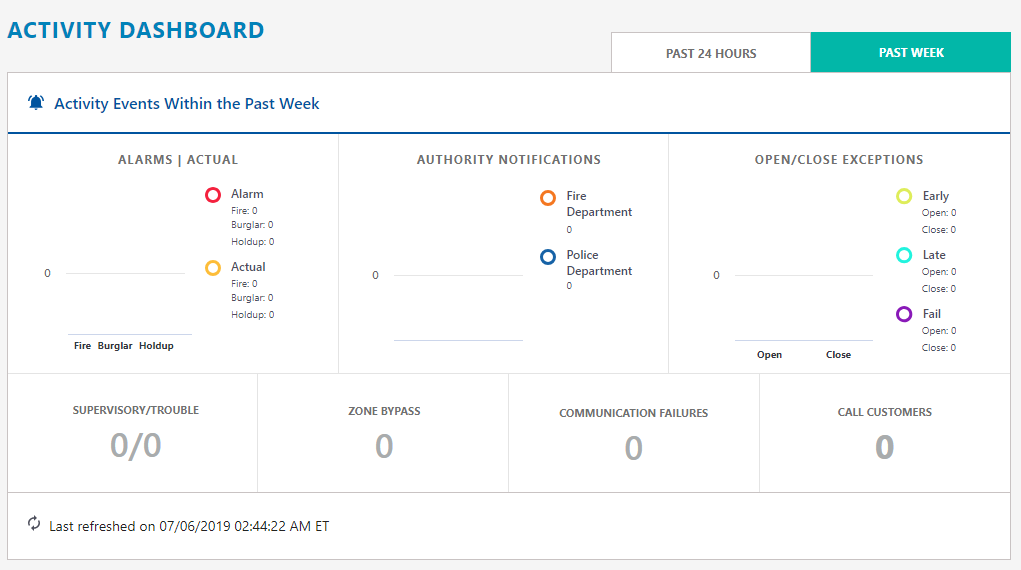 4. To change the time frame for the dashboard, you can toggle between Past Week and Past 24 Hours tabs in the upper-right-hand corner.