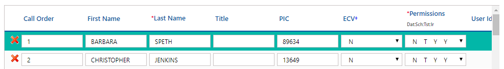 icon deletes the contact row.