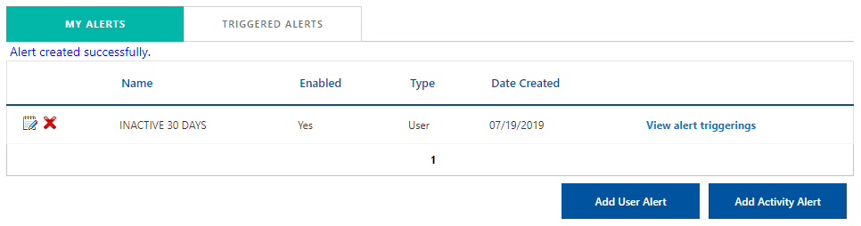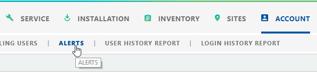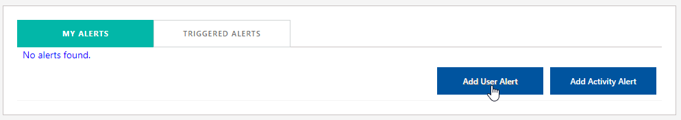 To create an activity alert, click Account from the Navigation bar and select the Alerts tab. By default, the My Alerts tab in the User Alerts panel will be displayed.