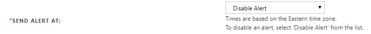 To disable an alert, select Disable Alert from the Sent Alert At drop-down list.