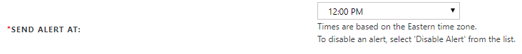 To enable an alert, select a time value from the Sent Alert At drop-down list.