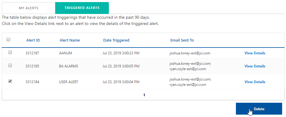 Delete - Permanently removes the alert associated with the triggered alert.