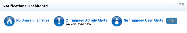 To view triggered alerts in the Notifications Dashboard, click Home from the Navigation bar.